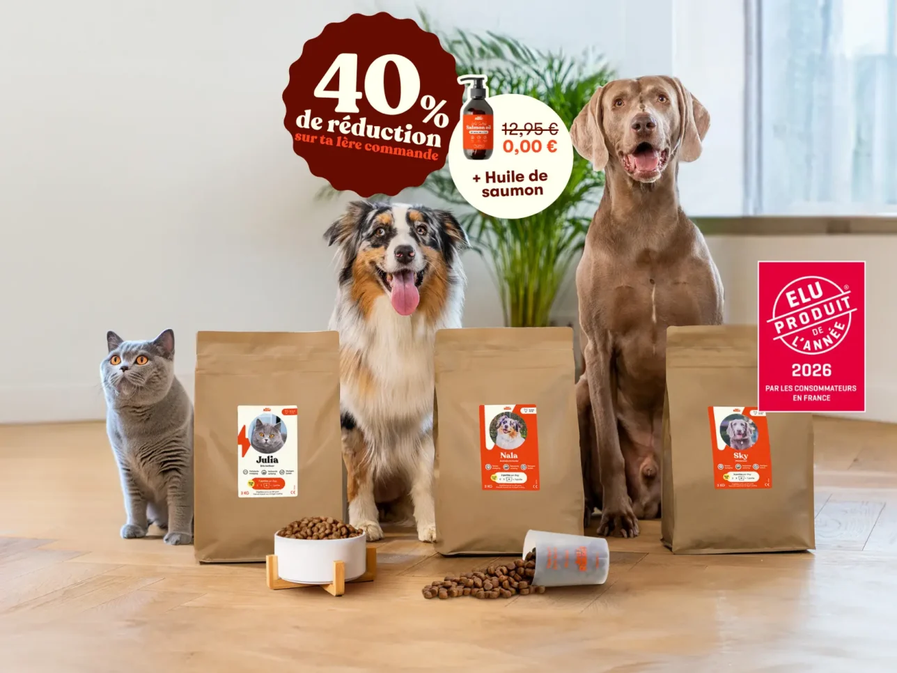 Rien de plus simple ! Remplis notre questionnaire en ligne avec le profil de ton animal. Une fois ta commande passée, nous préparons ton colis et livrons l’alimentation personnalisée de ton compagnon gratuitement à domicile sous 2 à 4 jours ouvrables.